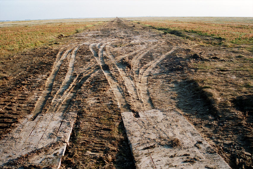 Der Bauleiter meinte dazu, der Ökogutachter – der die Umweltverträglichkeitsuntersuchung gemacht hatte und auch während der Bauzeit dokumentierend vor Ort war – hätte die Transporte genehmigt (Kraft welcher Autorität?) und einen Weg abgesteckt. Die Touris haben ihn jedenfalls dankbar angenommen. |