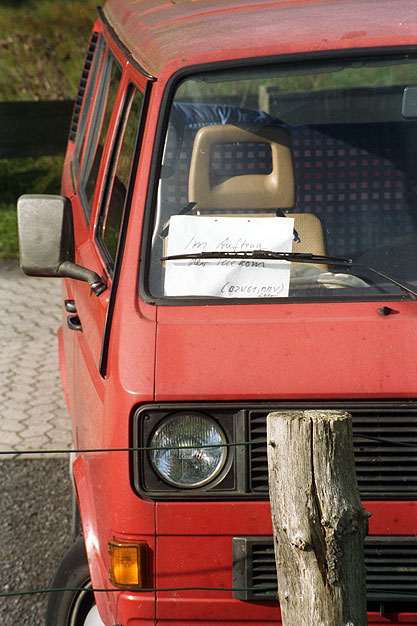 Übrigens, das mit dem Gutachter ist auch sonst "interessant": Er ist zwar formell unabhängig, wird aber durch den Antragsteller bestimmt. Die zu kontrollierenden suchen sich ihre Kontrolleure also mal wieder selber aus... und die sind wahrscheinlich auch noch mehr oder weniger stark in ihrer wirtschaftlichen Existenz von den Antragstellern abhängig. Am Osthellerparkplatz entstand, relativ zu Beginn der ganzen Geschichte, dieses Foto: (wer es nicht entziffern kann: Auf dem Zettel hinter der Scheibe steht "Im Auftrag der Telekom") |