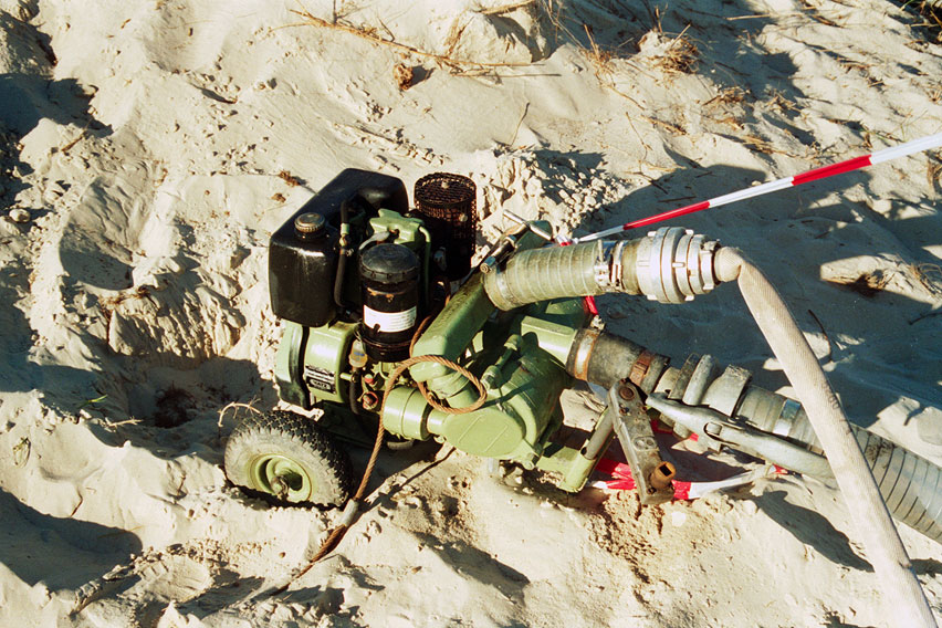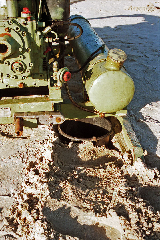 Die Schläuche an der Ziehgrube dienen der Grundwasserabsenkung (die Grube würde sonst voll Wasser stehen). Auf dem Mittelweg wurden natürlich wieder die gleichen Pumpen wie schon im Heller verwendet, und wie schon im Heller verloren sie auch hier fleißig Treibstoff.
