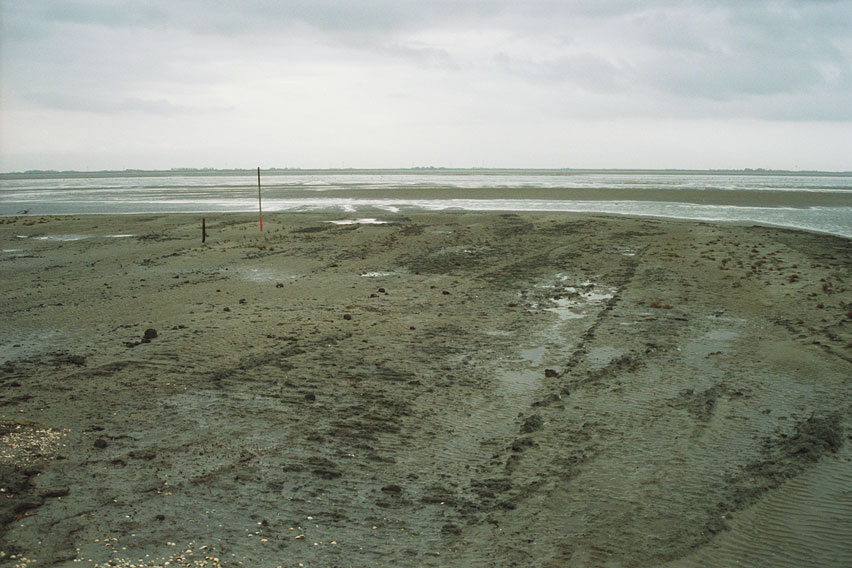 Zum Vergleich: Die Wattkante vor Beginn der Arbeiten mit schwerem Gerät (aber schon freigelegten Leerrohren) | ![]() |
